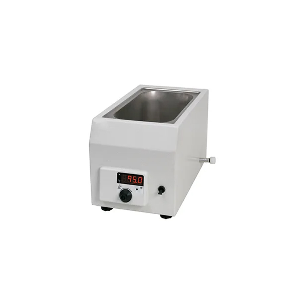Banho de aquecimento com corpo metálico e pintura em epóxi eletrostática, cuba em aço inoxidável 304 sem emendas com cantos arredondados, controle de temperatura digital e plataforma interna.